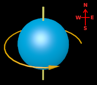 (i) The blue sphere represents the earth. The yellow line is the axis